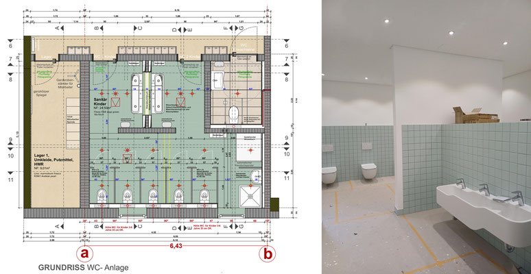 Abseits der Gruppenräume wurden auch die funktionalen Bereiche komplett erneuert. Die Küche wurde nach modernen Hygienestandards für die Zubereitung gesunder Mahlzeiten ausgestattet. Die Garderobe bietet nun kindgerechte, übersichtliche Stauraumlösungen, während die gesamte WC-Anlage umfassend saniert wurde, um höchste Standards an Sauberkeit und altersgerechte Nutzung zu gewährleisten.