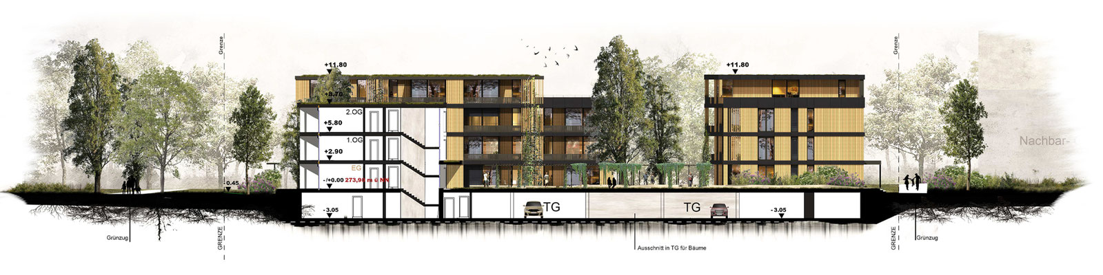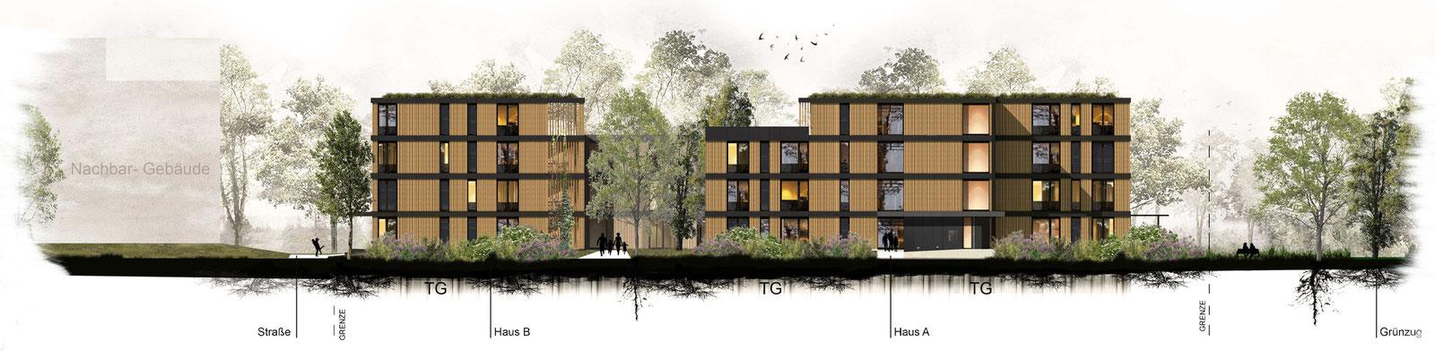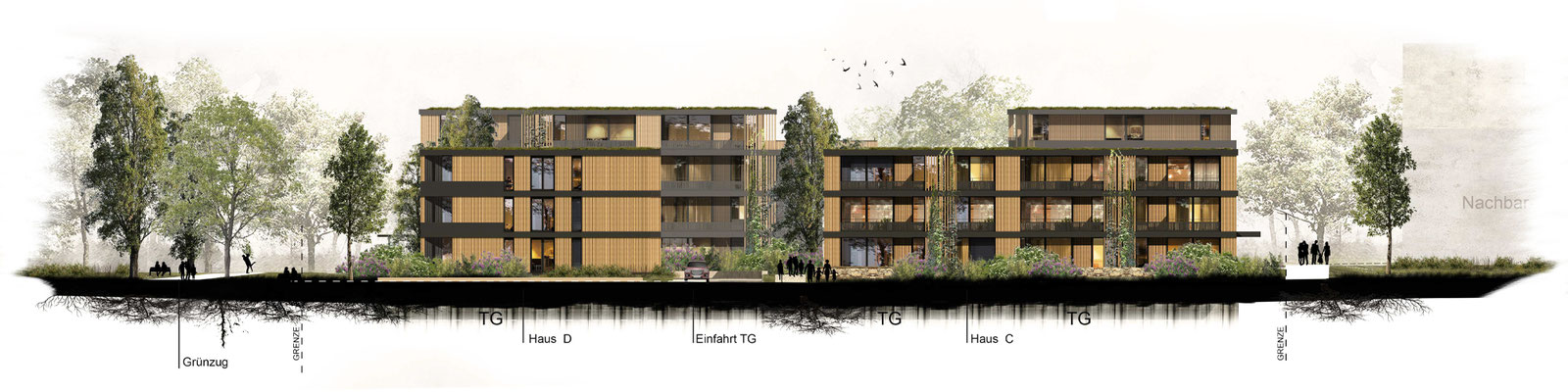 Die effiziente Grundrissorganisation erlaubt es uns, eine hohe Dichte an Wohnraum mit vielfältigen Wohnungstypen zu realisieren, ohne dabei das Gefühl von Enge aufkommen zu lassen. Unser Entwurf beweist, dass sich ökologische Verantwortung, wirtschaftliche Umsetzbarkeit und herausragende Architektur nicht widersprechen, sondern gegenseitig verstärken.